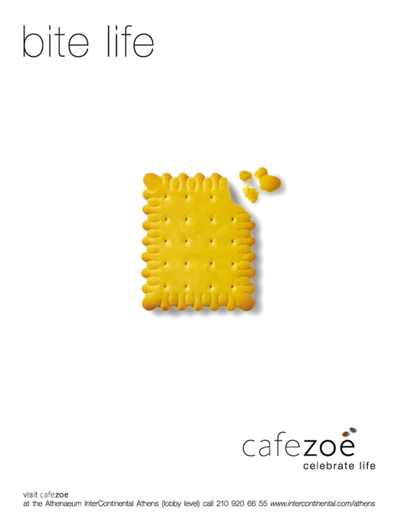 Cafe Zoe is a dining space in the Athenaeum InterContinental Hotel. Zoe means life in Greek, and based on this driving concept, We created the communication platform, "ingredients of life", projecting the image for a new dining environment. Everyday, simple and traditional objects were given a contemporary appeal, making them premium and relevant to modern Mediterranean dining. This new presentation of sensations implies that at Zoe you don't simply dine, but experience life through a collage of Greek culture.